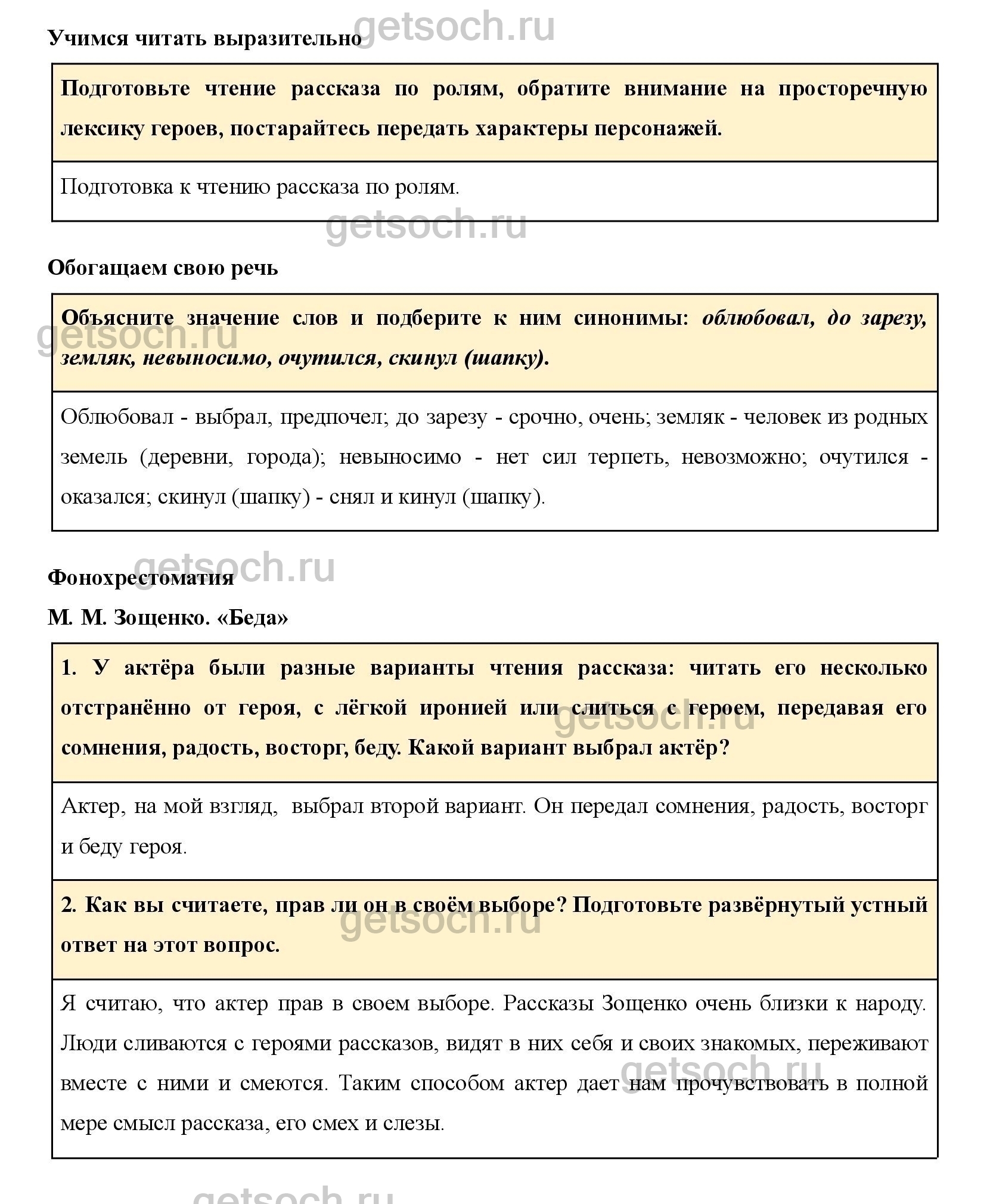 Подготовьте чтение рассказа по ролям, обратите внимание на просторечную лексику героев, постарайтесь передать характеры персонажей.
