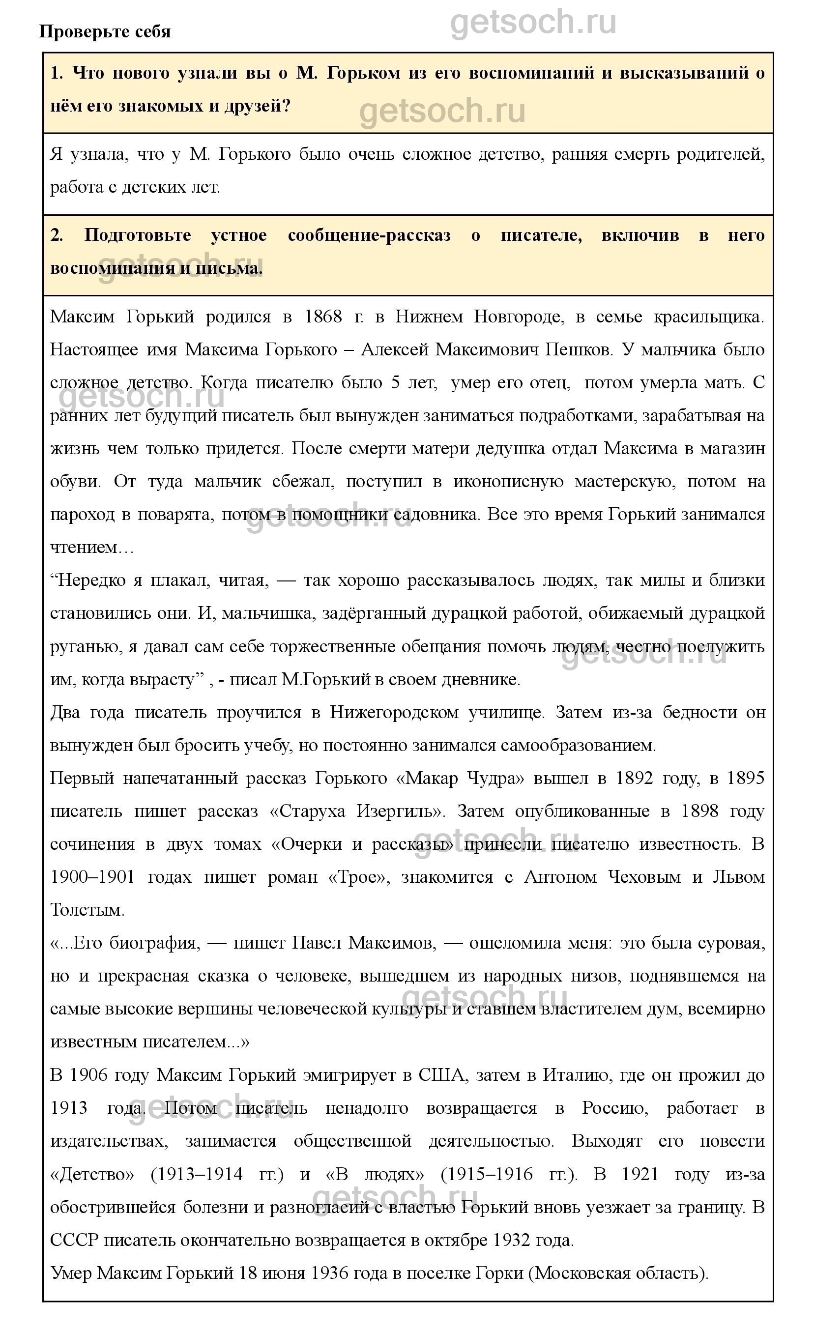 1. Что нового узнали вы о М. Горьком из его воспоминаний и высказываний о нём его знакомых и друзей?