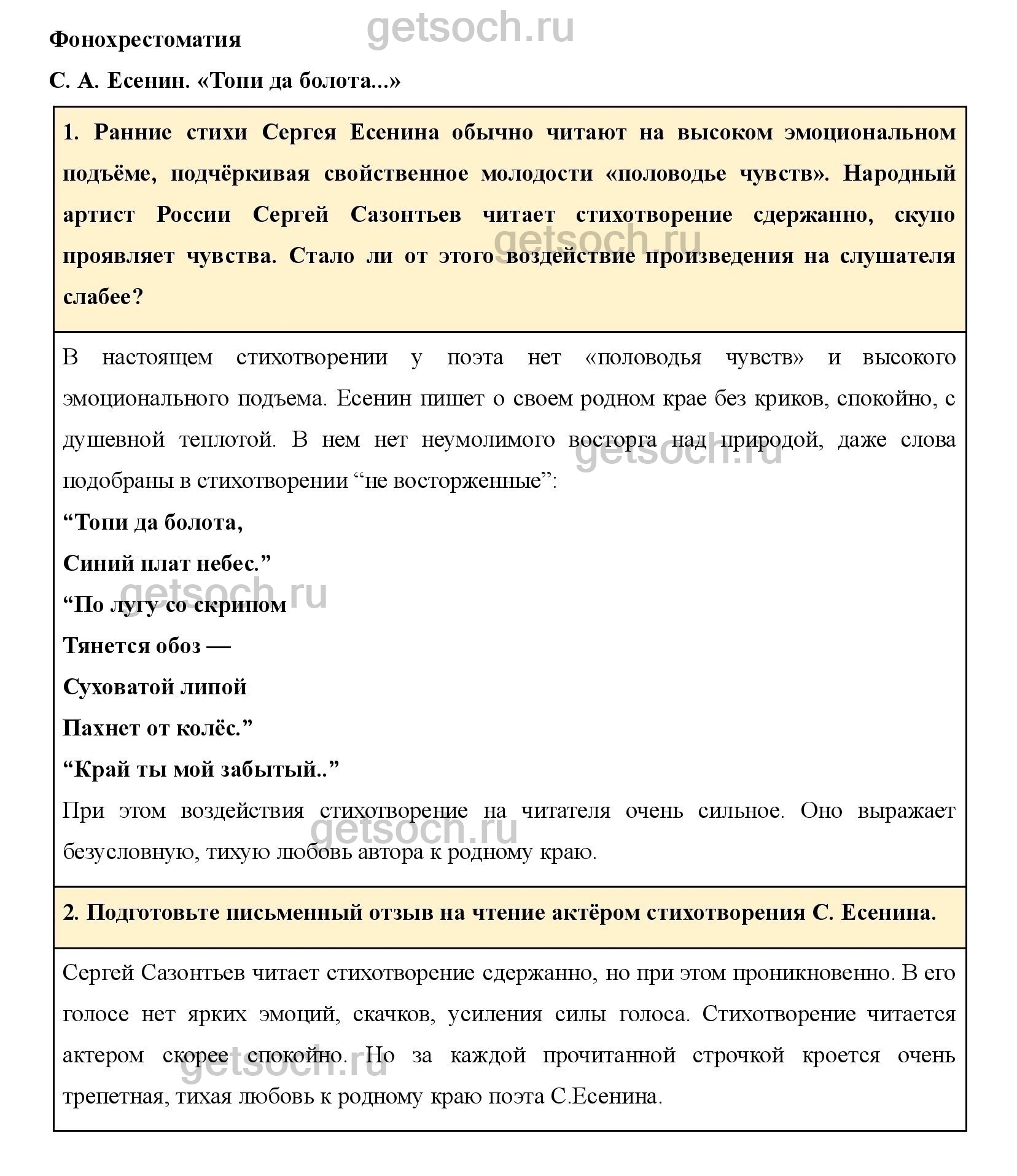 2. Подготовьте письменный отзыв на чтение актёром стихотворения С. Есенина.