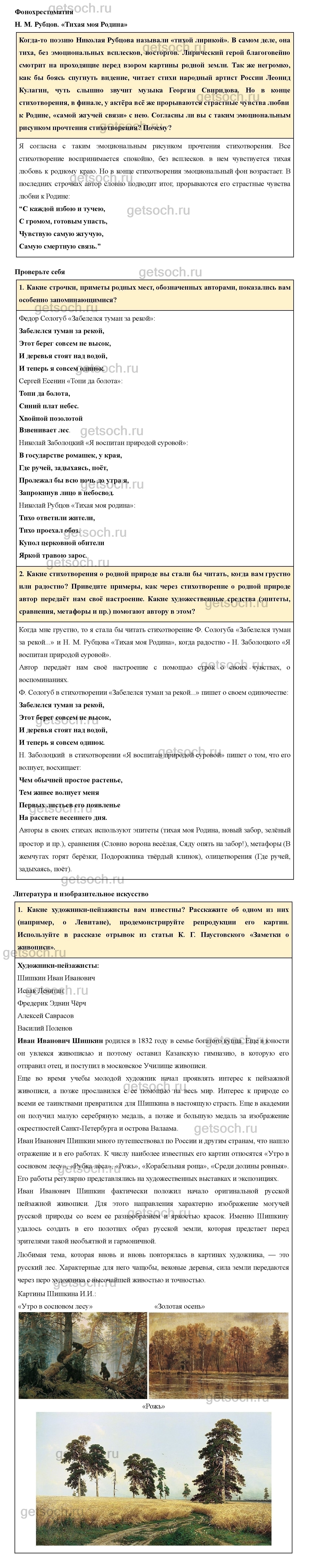 1. Какие художники-пейзажисты вам известны? Расскажите об одном из них (например, о Левитане), продемонстрируйте репродукции его картин. Используйте в рассказе отрывок из статьи К. Г. Паустовского «Заметки о живописи».