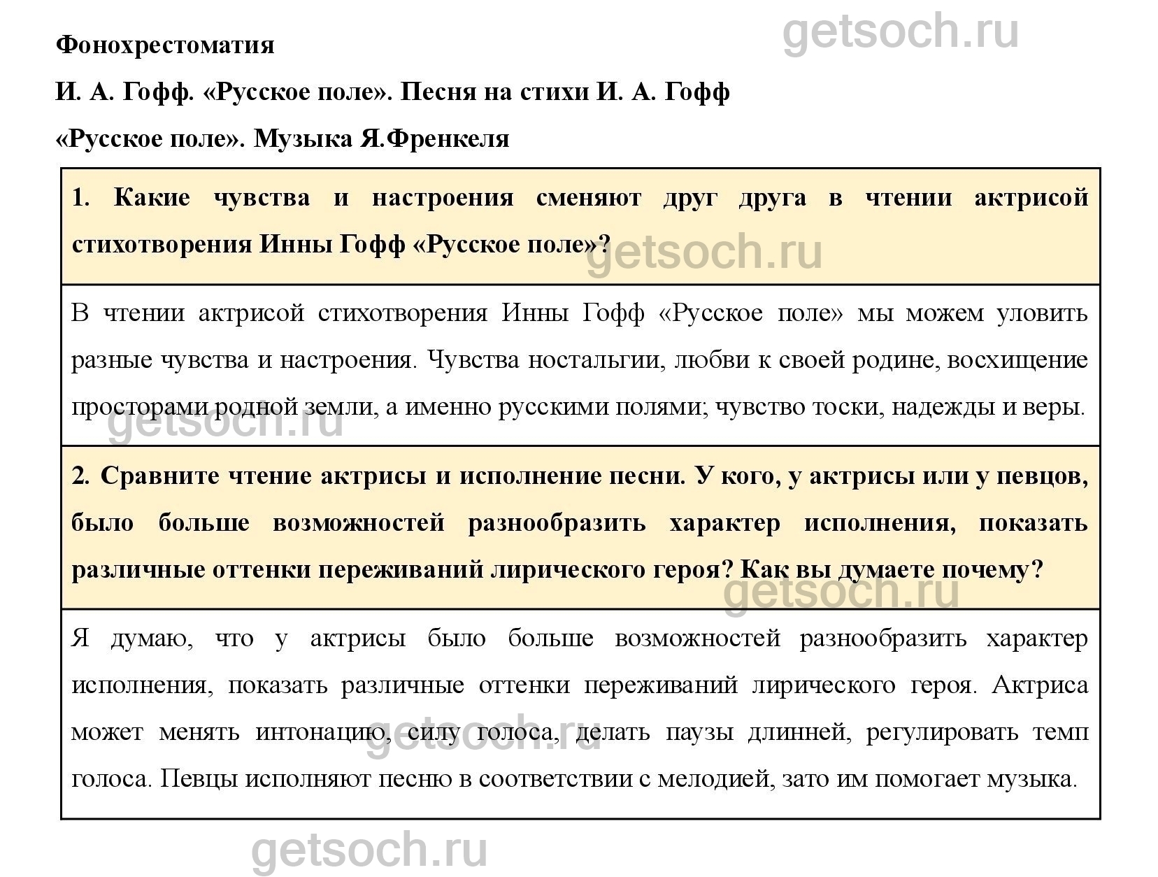 1. Какие чувства и настроения сменяют друг друга в чтении актрисой стихотворения Инны Гофф «Русское поле»?