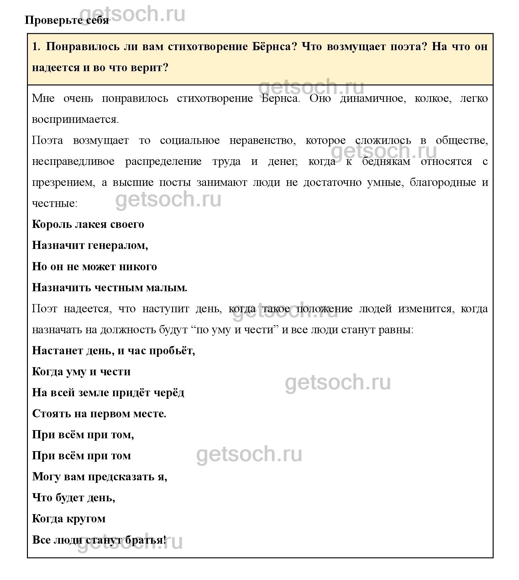 1. Понравилось ли вам стихотворение Бёрнса? Что возмущает поэта? На что он надеется и во что верит?