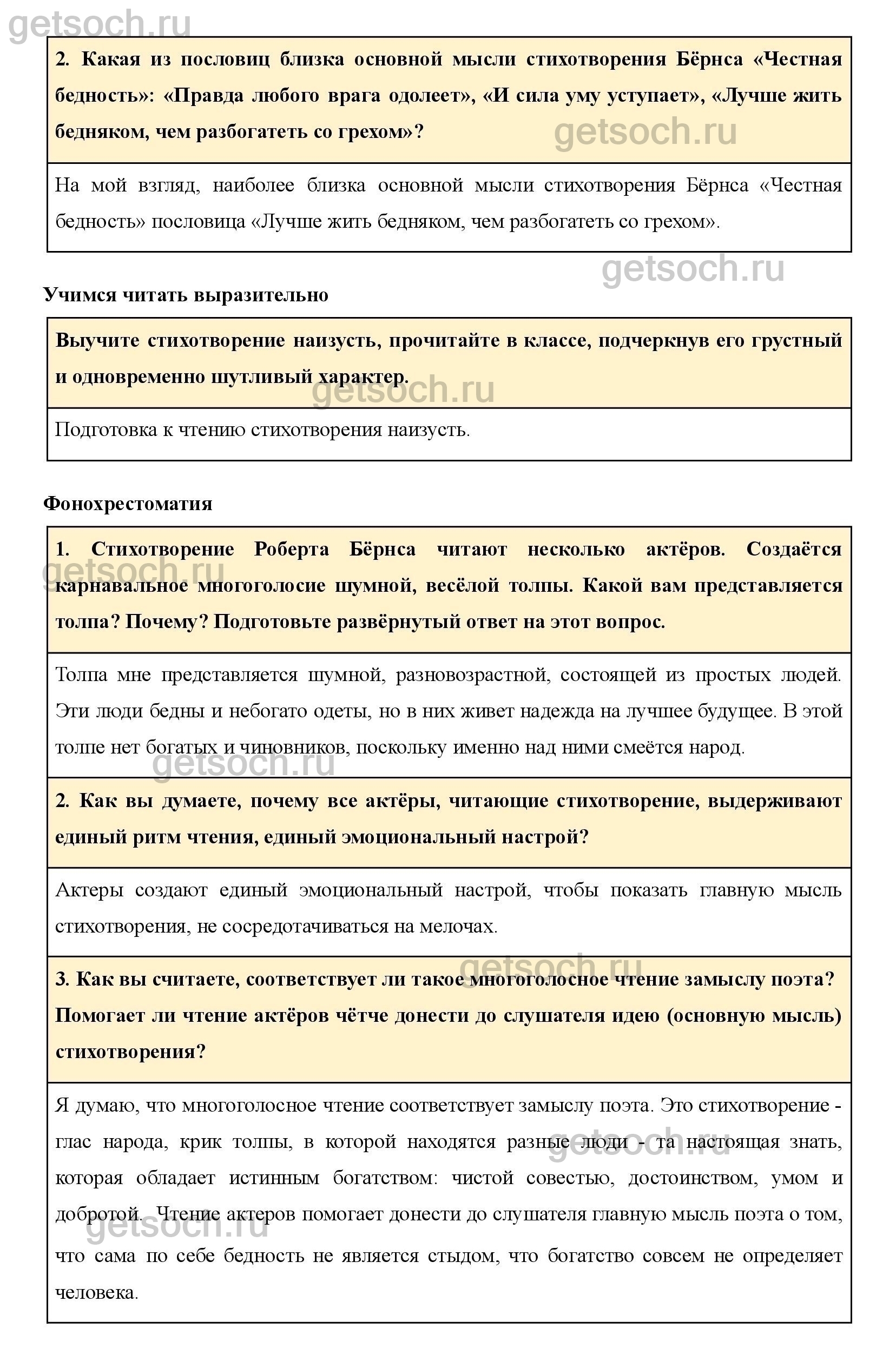 2. Какая из пословиц близка основной мысли стихотворения Бёрнса «Честная бедность»: «Правда любого врага одолеет», «И сила уму уступает», «Лучше жить бедняком, чем разбогатеть со грехом»?