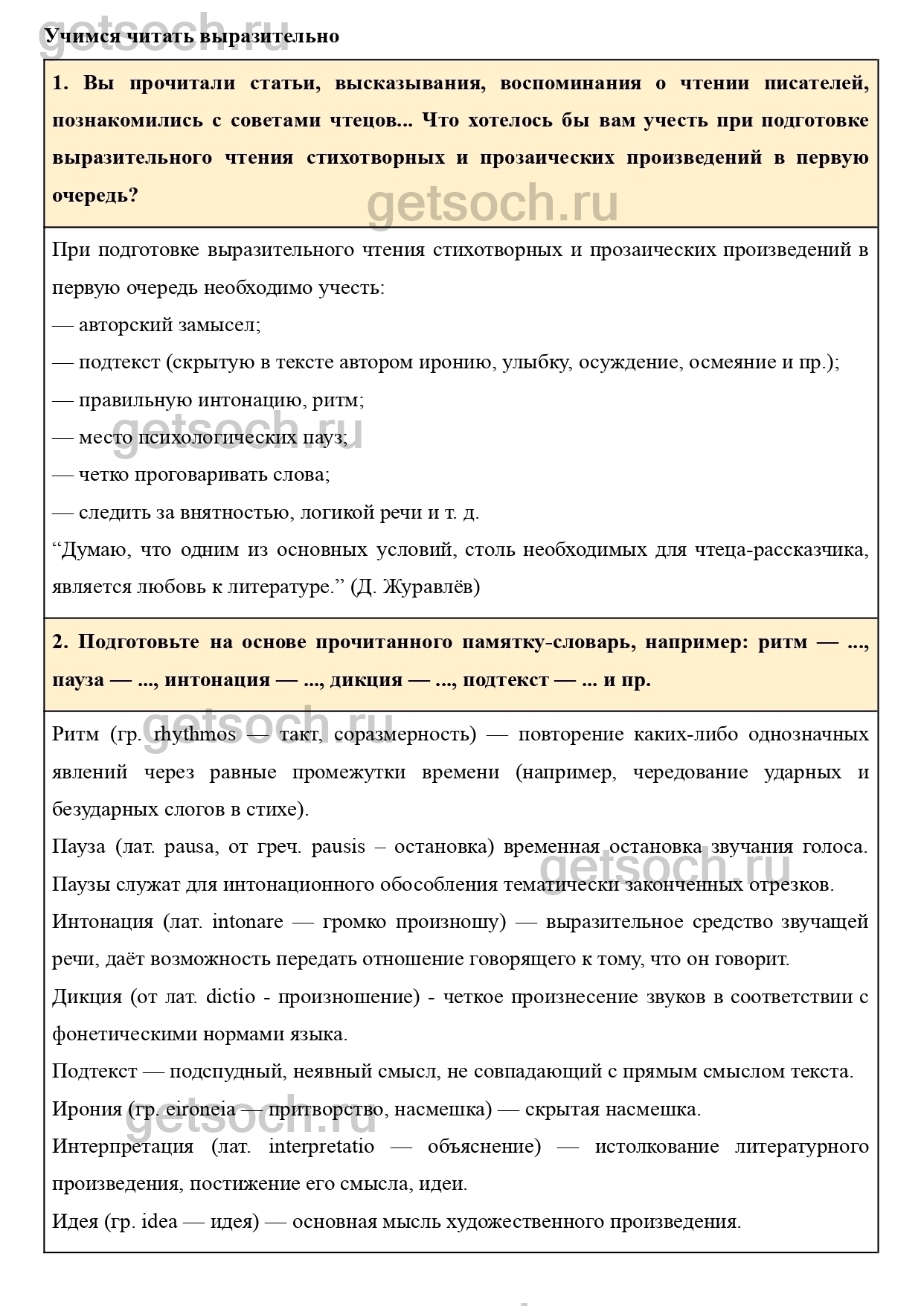 2. Подготовьте на основе прочитанного памятку-словарь, например: ритм — …, пауза — …, интонация — …, дикция — …, подтекст — … и пр.