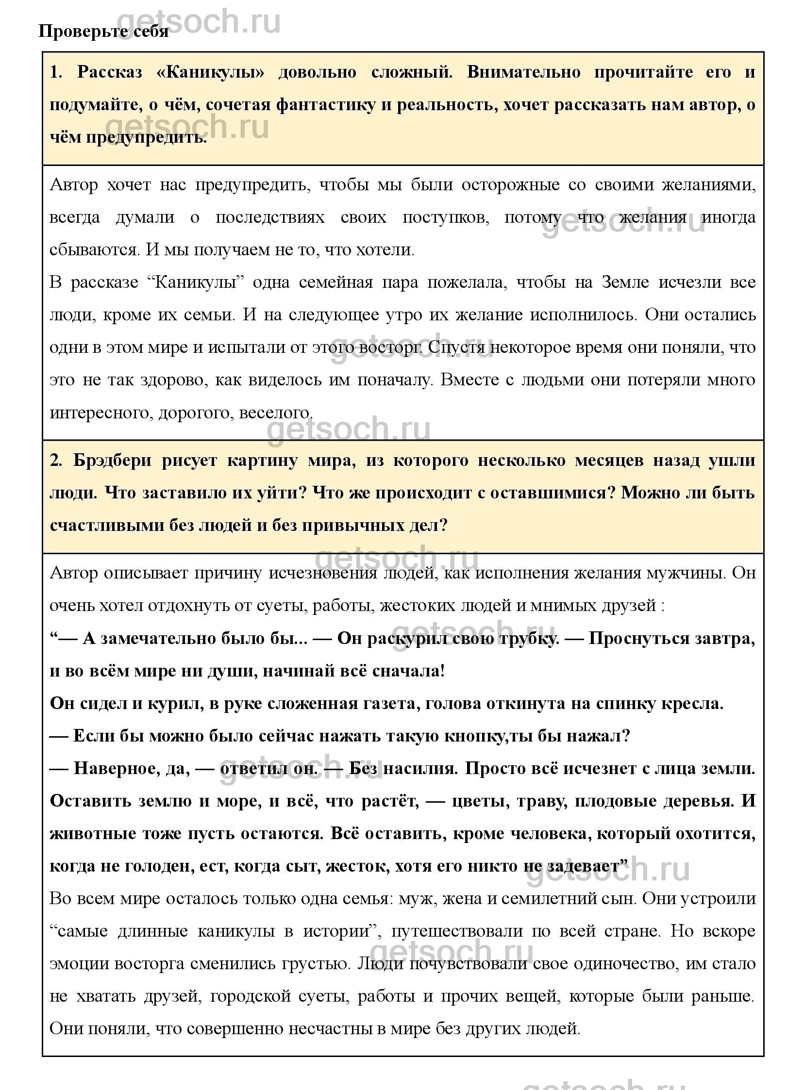 1. Рассказ «Каникулы» довольно сложный. Внимательно прочитайте его и подумайте, о чём, сочетая фантастику и реальность, хочет рассказать нам автор, о чём предупредить.