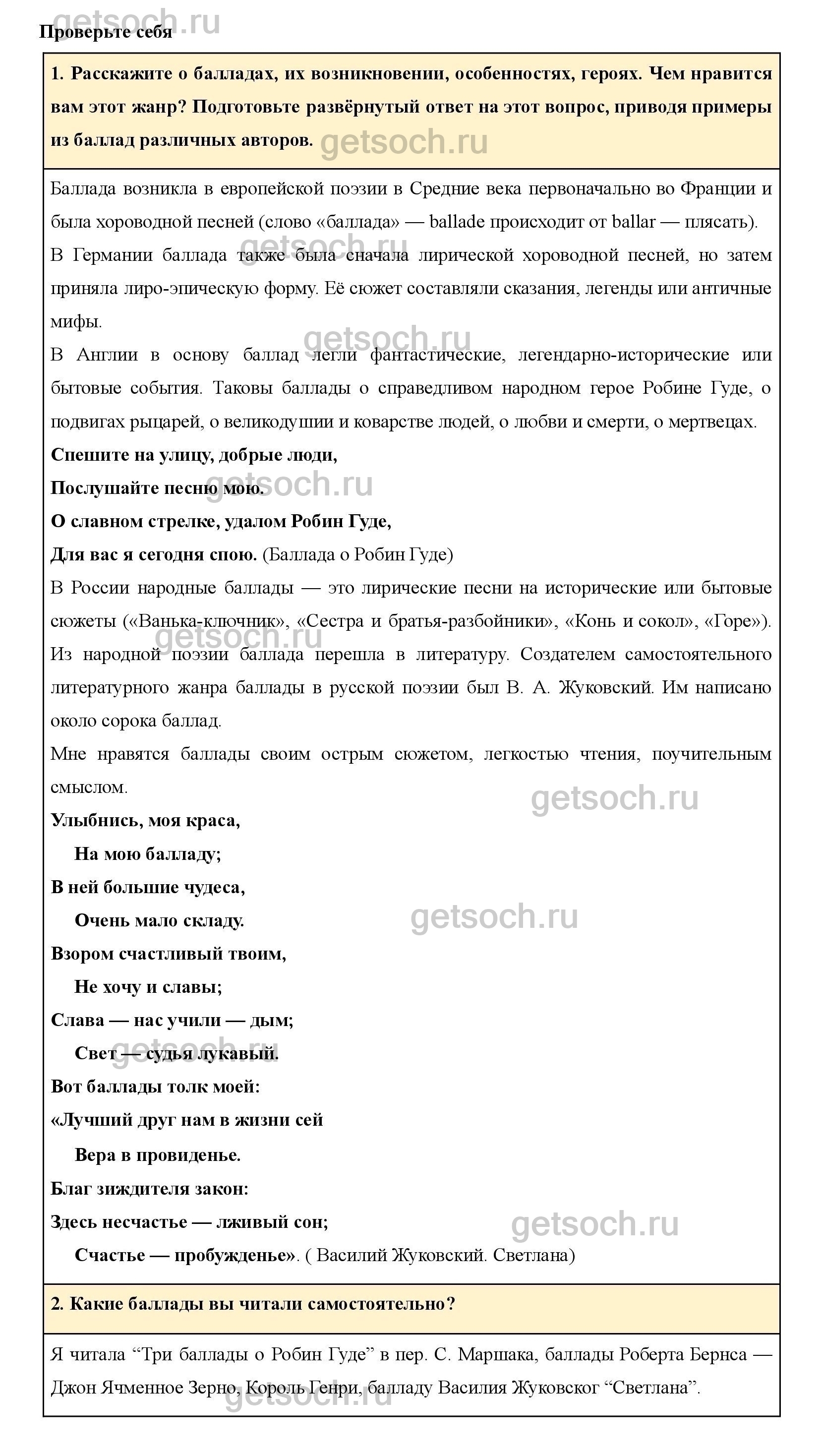 1. Расскажите о балладах, их возникновении, особенностях, героях. Чем нравится вам этот жанр? Подготовьте развёрнутый ответ на этот вопрос, приводя примеры из баллад различных авторов.