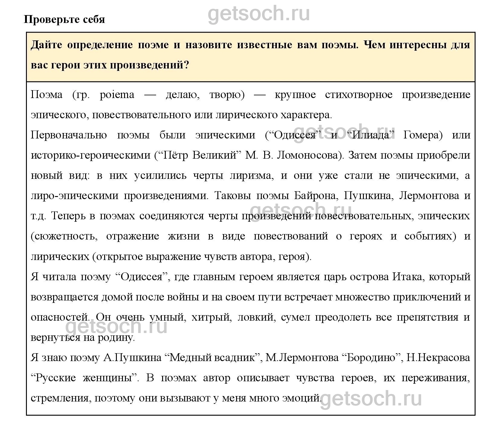 Дайте определение поэме и назовите известные вам поэмы. Чем интересны для вас герои этих произведений?