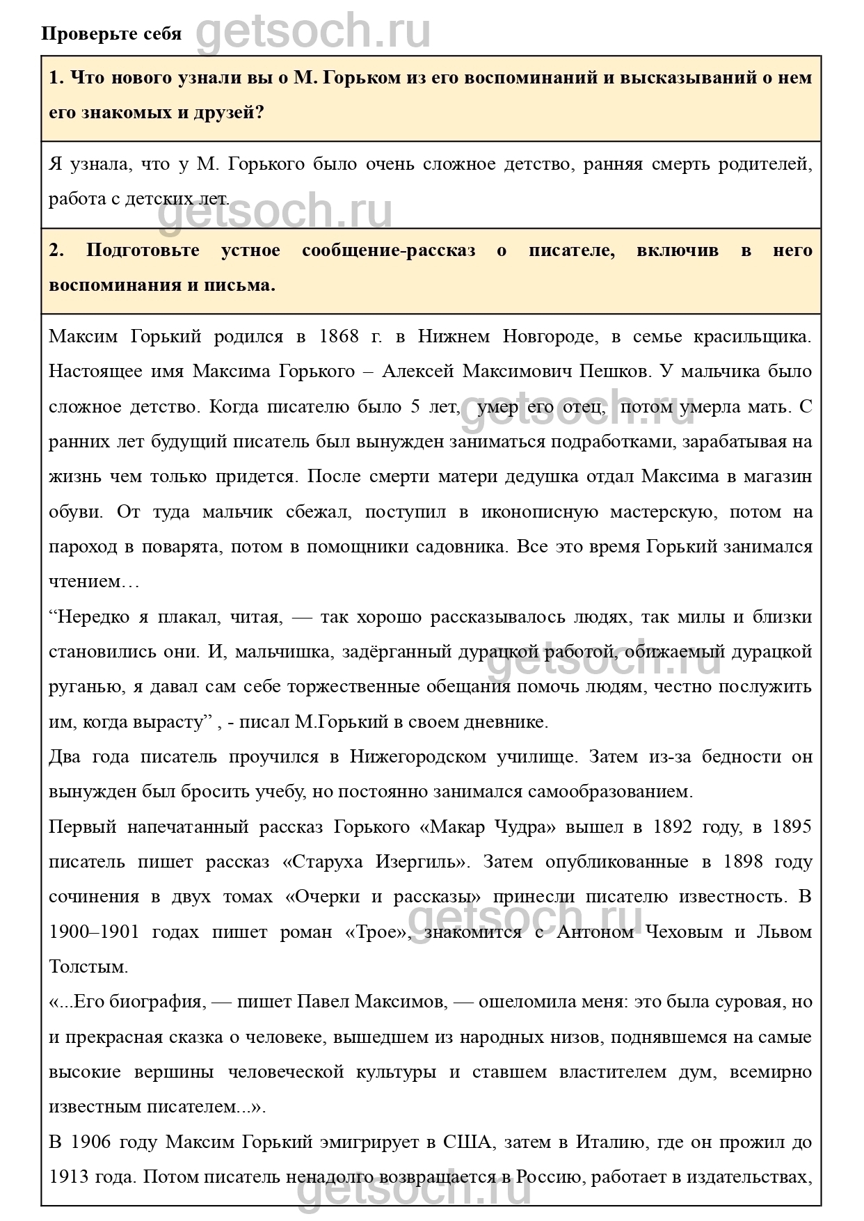 1. Что нового узнали вы о М. Горьком из его воспоминаний и высказываний о нем его знакомых и друзей?
