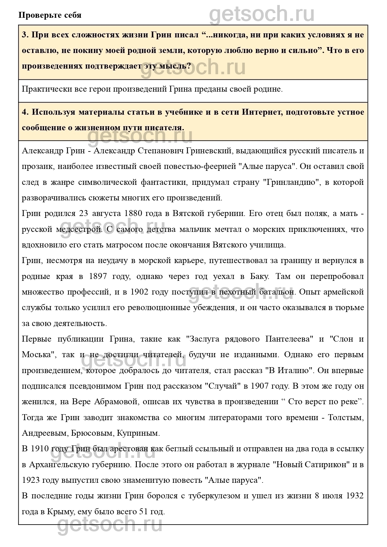 4. Используя материалы статьи в учебнике и в сети Интернет, подготовьте устное сообщение о жизненном пути писателя.