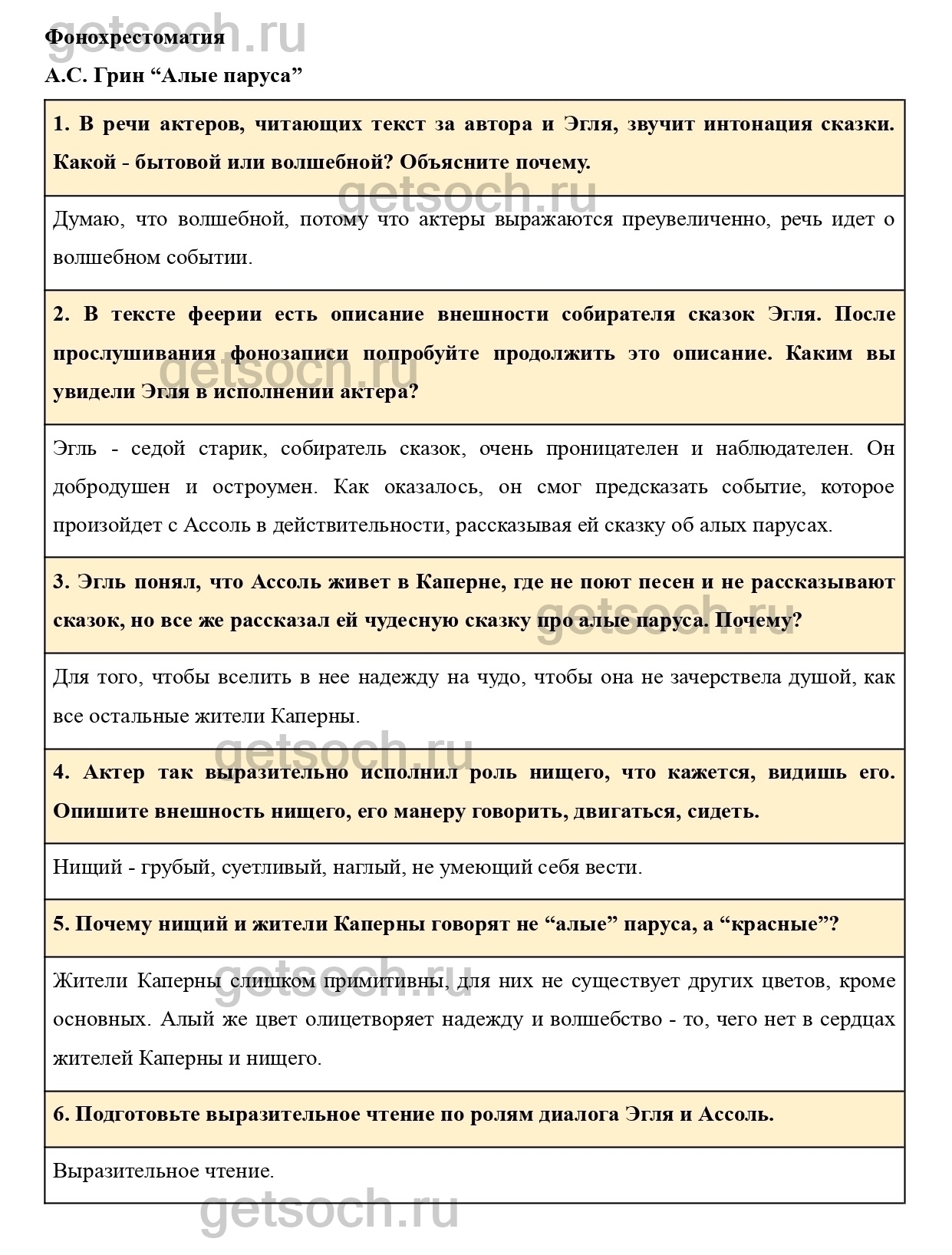 6. Подготовьте выразительное чтение по ролям диалога Эгля и Ассоль.