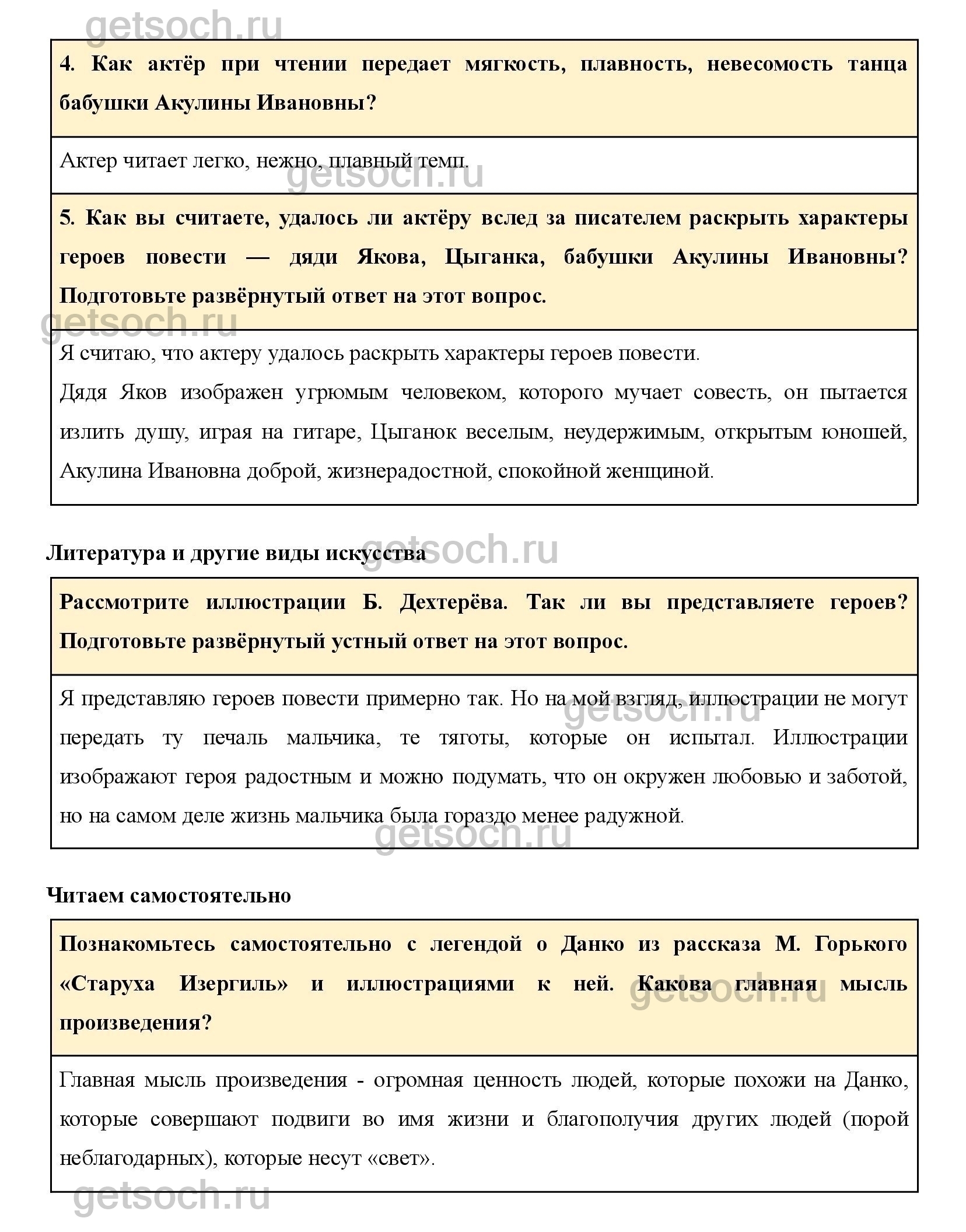 5. Как вы считаете, удалось ли актёру вслед за писателем раскрыть характеры героев повести — дяди Якова, Цыганка, бабушки Акулины Ивановны? Подготовьте развёрнутый ответ на этот вопрос.