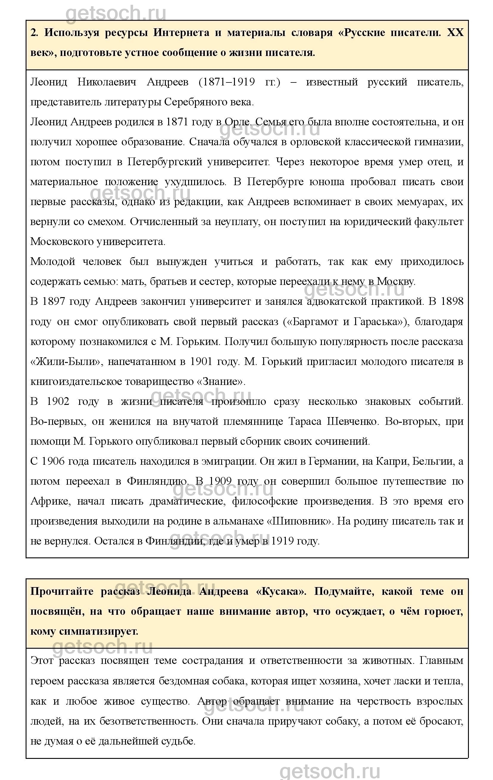 Прочитайте рассказ Леонида Андреева «Кусака». Подумайте, какой теме он посвящён, на что обращает наше внимание автор, что осуждает, о чём горюет, кому симпатизирует.