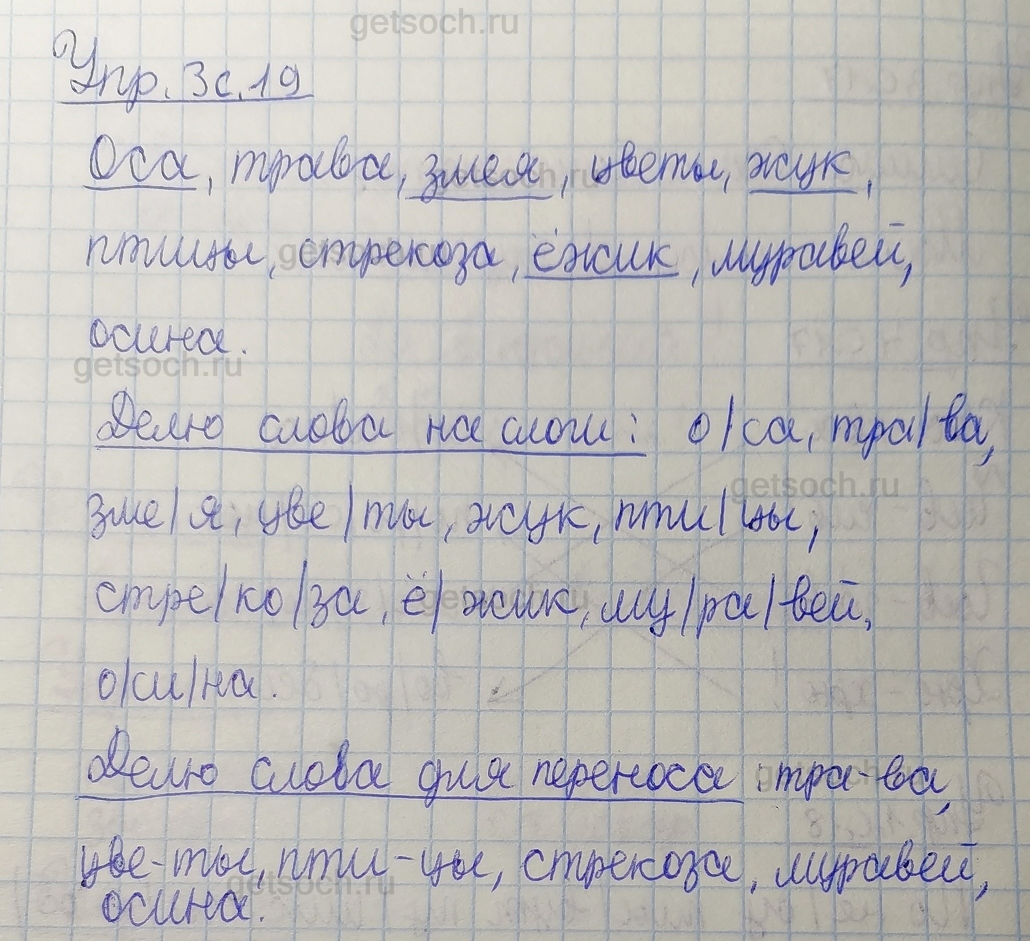 Рассмотрим ответы на Страница 19 из рабочей тетради по русскому языку для 1 класса Канакиной
