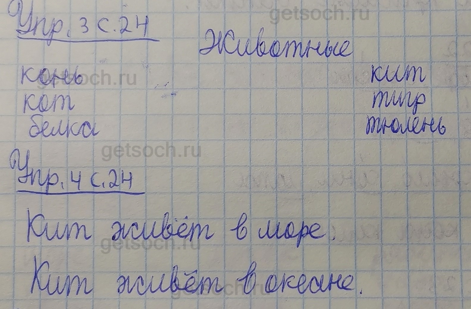 Рассмотрим ответы на Страница 24 из рабочей тетради по русскому языку для 1 класса Канакиной