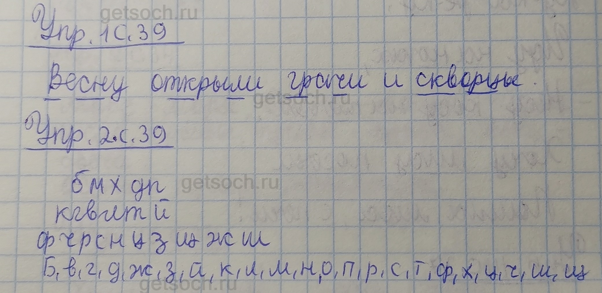 Рассмотрим ответы на Страница 39 из рабочей тетради по русскому языку для 1 класса Канакиной