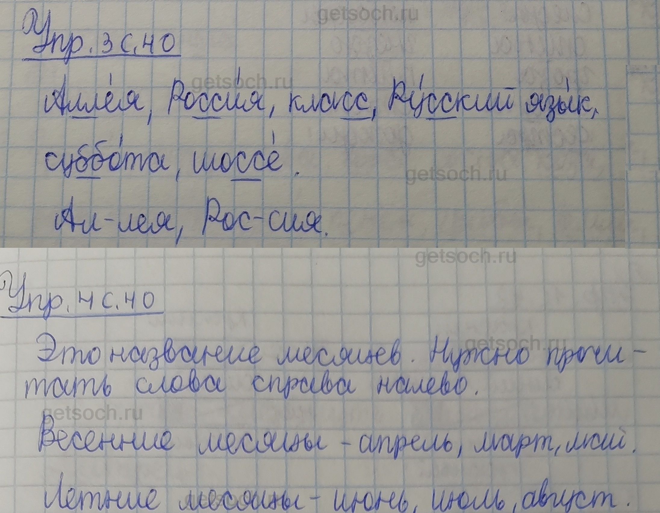 Рассмотрим ответы на Страница 40 из рабочей тетради по русскому языку для 1 класса Канакиной