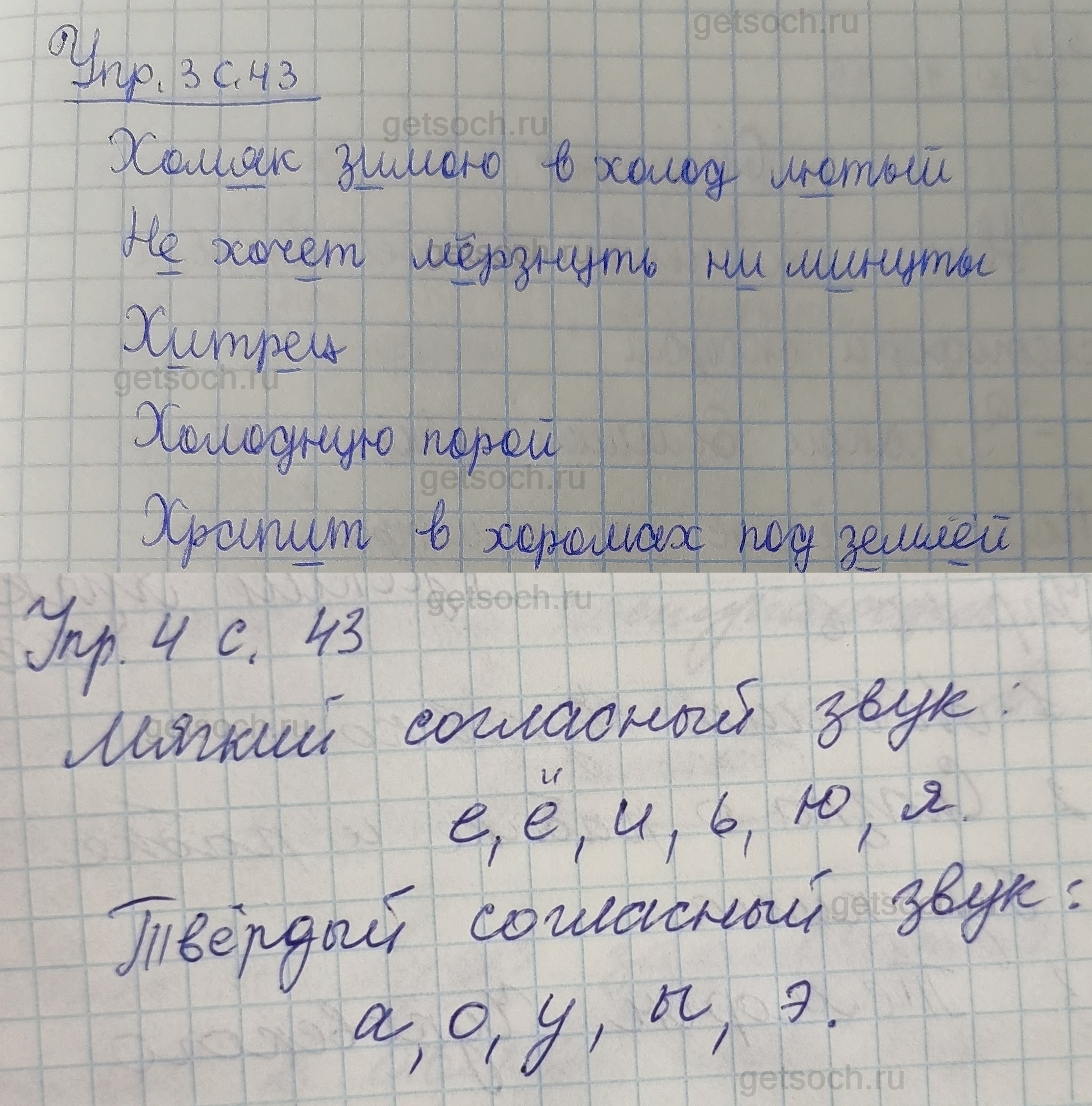Рассмотрим ответы на Страница 43 из рабочей тетради по русскому языку для 1 класса Канакиной