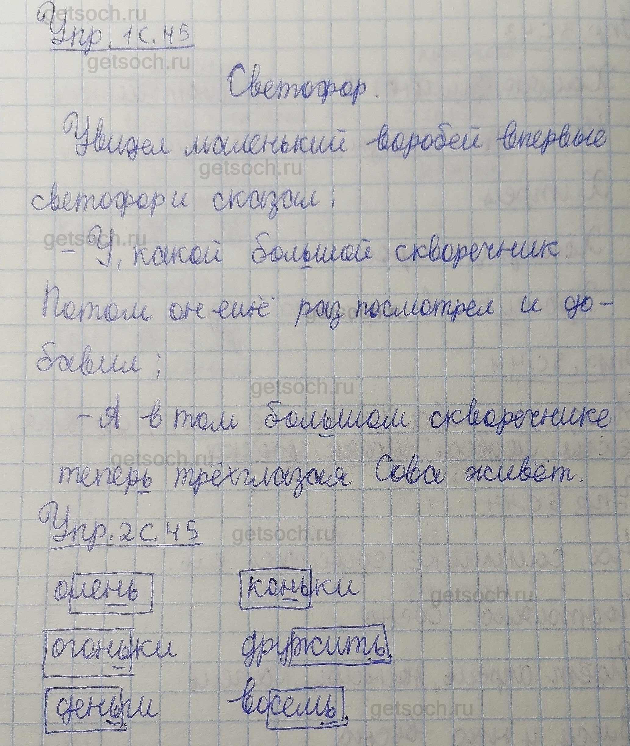 Рассмотрим ответы на Страница 45 из рабочей тетради по русскому языку для 1 класса Канакиной
