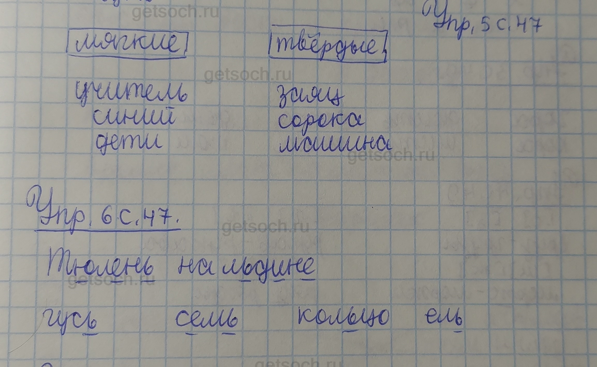 Рассмотрим ответы на Страница 47 из рабочей тетради по русскому языку для 1 класса Канакиной