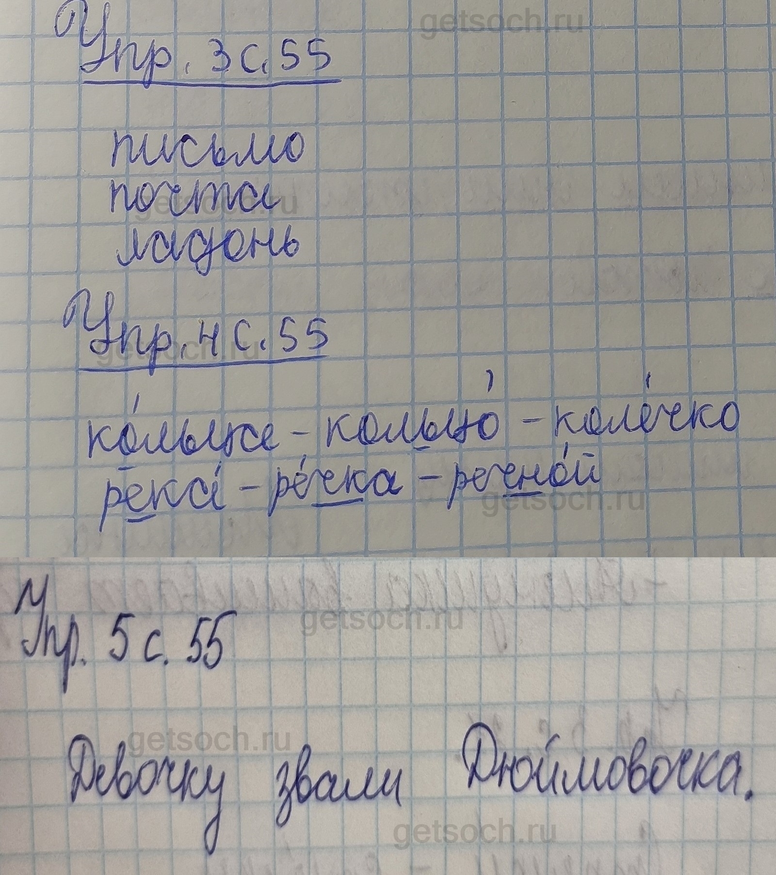 Рассмотрим ответы на Страница 55 из рабочей тетради по русскому языку для 1 класса Канакиной