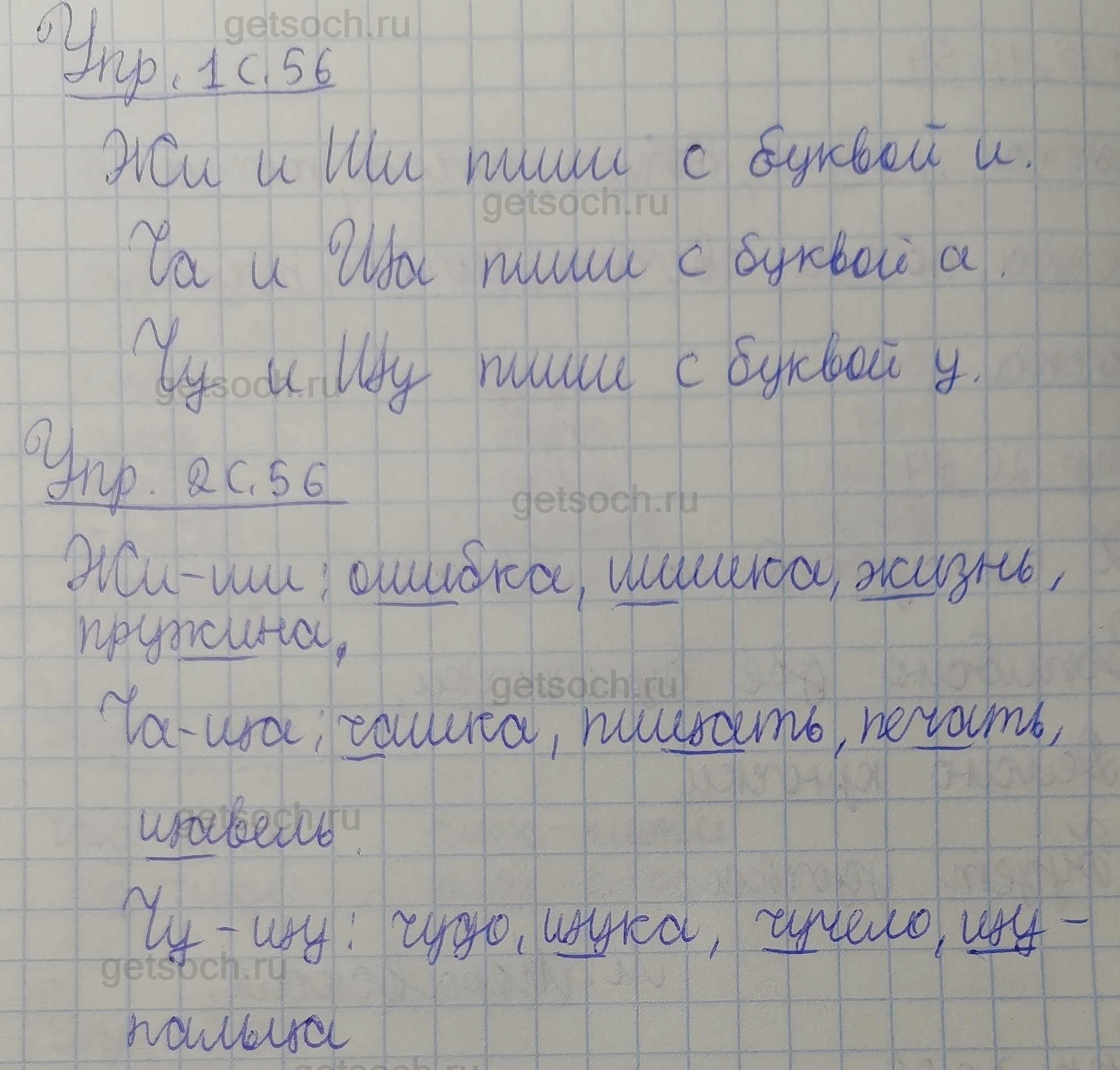 Рассмотрим ответы на Страница 56 из рабочей тетради по русскому языку для 1 класса Канакиной