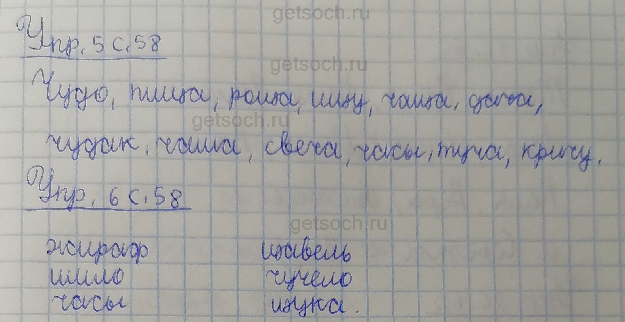 Рассмотрим ответы на Страница 58 из рабочей тетради по русскому языку для 1 класса Канакиной