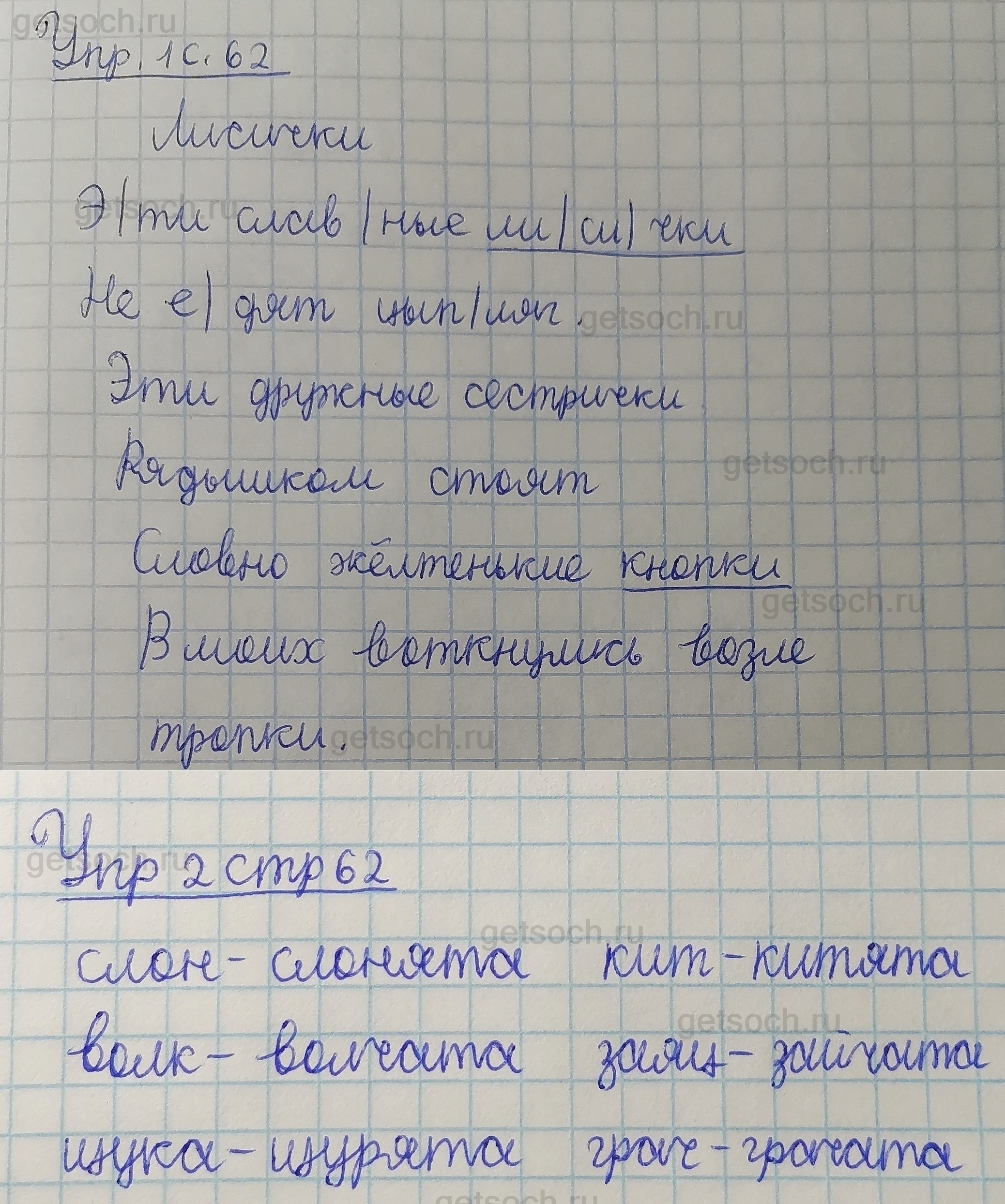 Рассмотрим ответы на Страница 62 из рабочей тетради по русскому языку для 1 класса Канакиной