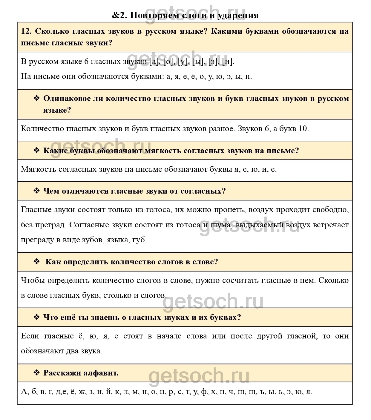 12. Сколько гласных звуков в русском языке? Какими буквами обозначаются на письме гласные звуки?
