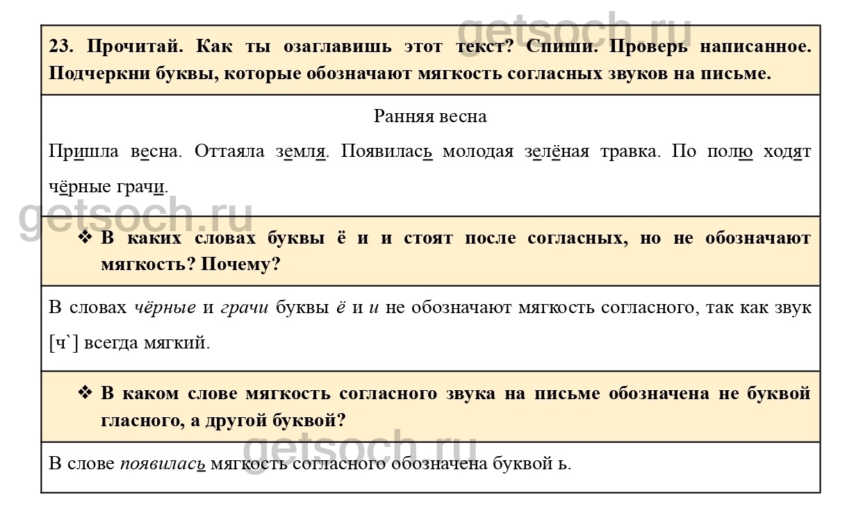 23. Прочитай. Как ты озаглавишь этот текст? Спиши. Проверь написанное. Подчеркни буквы, которые обозначают мягкость согласных звуков на письме.