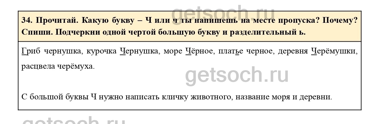 34. Прочитай. Какую букву – Ч или ч ты напишешь на месте пропуска? Почему? Спиши. Подчеркни одной чертой большую букву и разделительный ь.