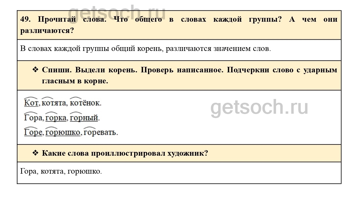 49. Прочитай слова. Что общего в словах каждой группы? А чем они различаются?