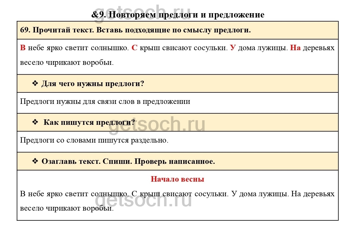 69. Прочитай текст. Вставь подходящие по смыслу предлоги.