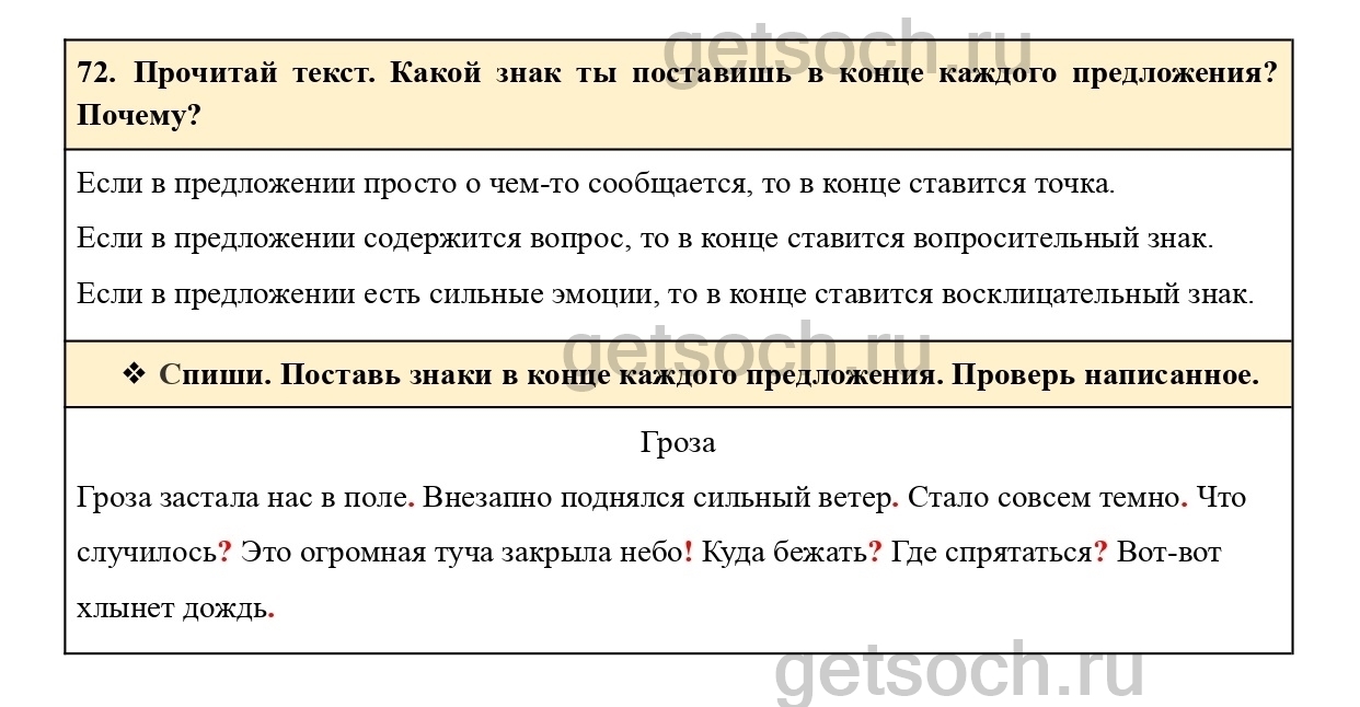 72. Прочитай текст. Какой знак ты поставишь в конце каждого предложения? Почему?