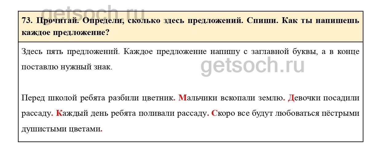 73. Прочитай. Определи, сколько здесь предложений. Спиши. Как ты напишешь каждое предложение?