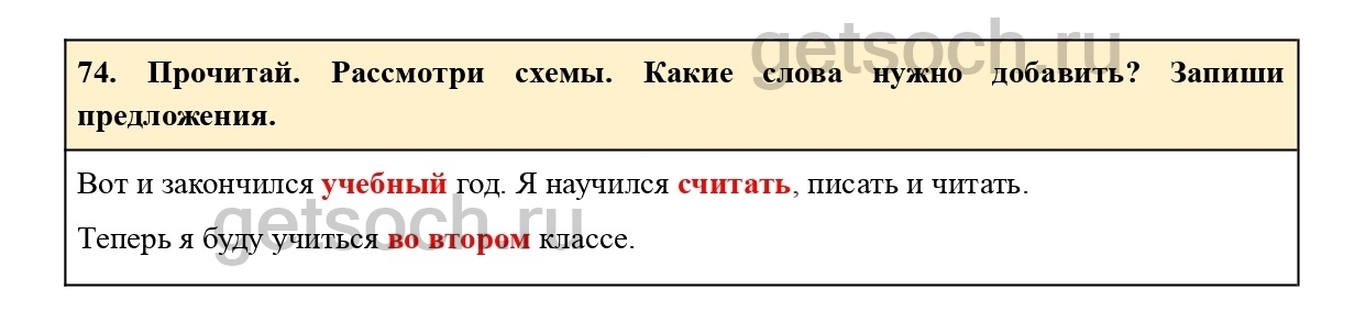 74. Прочитай. Рассмотри схемы. Какие слова нужно добавить? Запиши предложения.