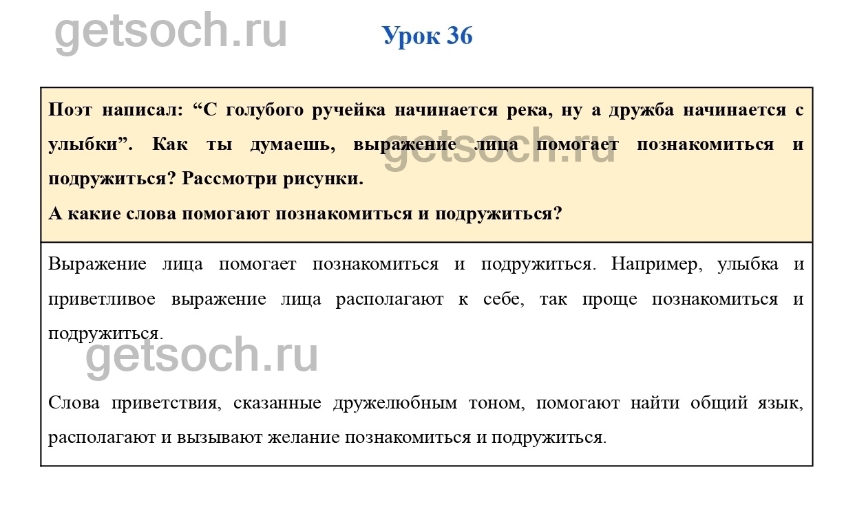 “Поэт написал: “С голубого ручейка начинается река, ну а дружба начинается с улыбки”. Как ты думаешь, выражение лица помогает познакомиться и подружиться? Рассмотри рисунки.
