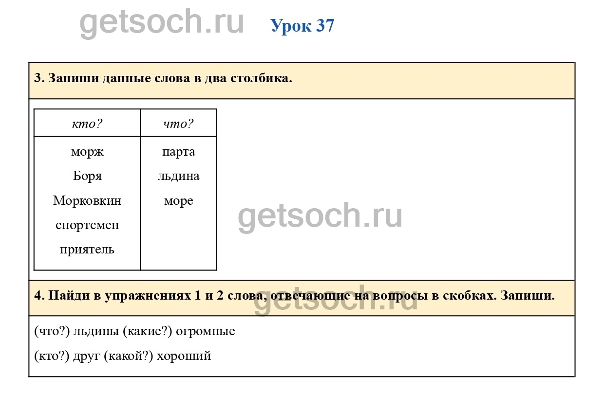 4. Найди в упражнениях 1 и 2 слова, отвечающие на вопросы в скобках. Запиши.