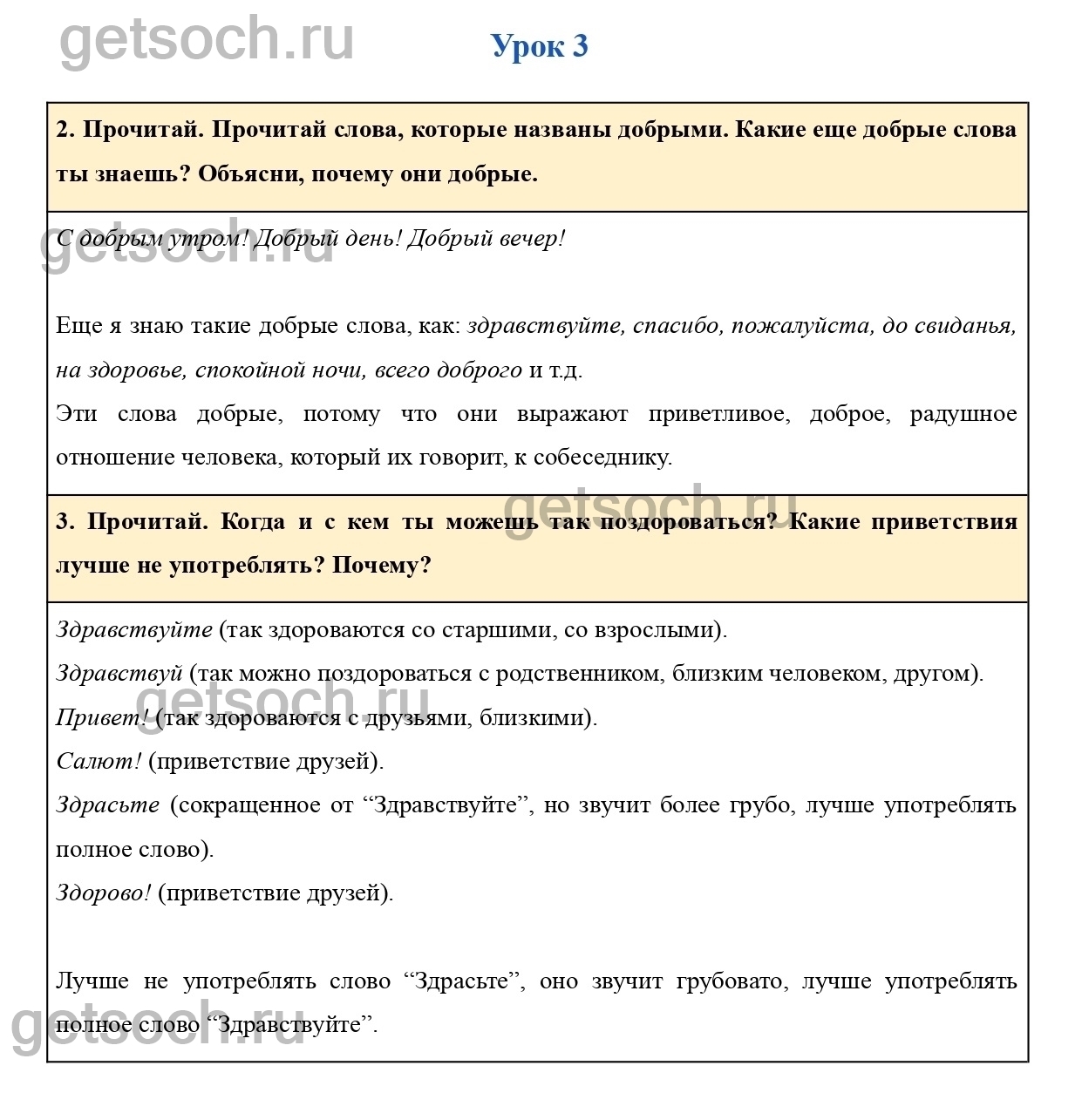 3. Прочитай. Когда и с кем ты можешь так поздороваться? Какие приветствия лучше не употреблять? Почему?
