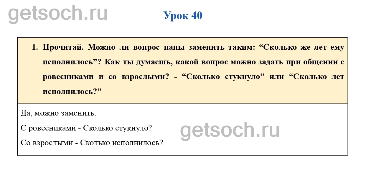 Прочитай. Можно ли вопрос папы заменить таким: “Сколько же лет ему исполнилось”? Как ты думаешь, какой вопрос можно задать при общении с ровесниками и со взрослыми? – “Сколько стукнуло” или “Сколько лет исполнилось?”