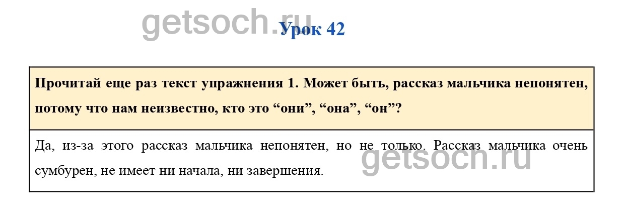 Прочитай еще раз текст упражнения 1. Может быть, рассказ мальчика непонятен, потому что нам неизвестно, кто это “они”, “она”, “он”?