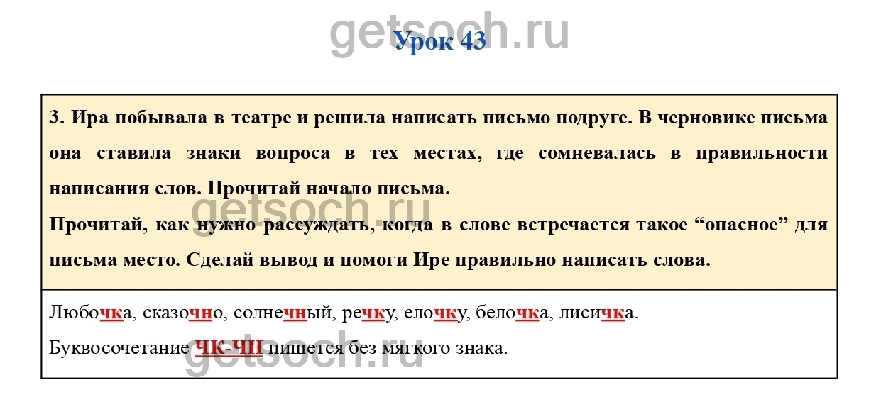 3. Ира побывала в театре и решила написать письмо подруге. В черновике письма она ставила знаки вопроса в тех местах, где сомневалась в правильности написания слов. Прочитай начало письма.