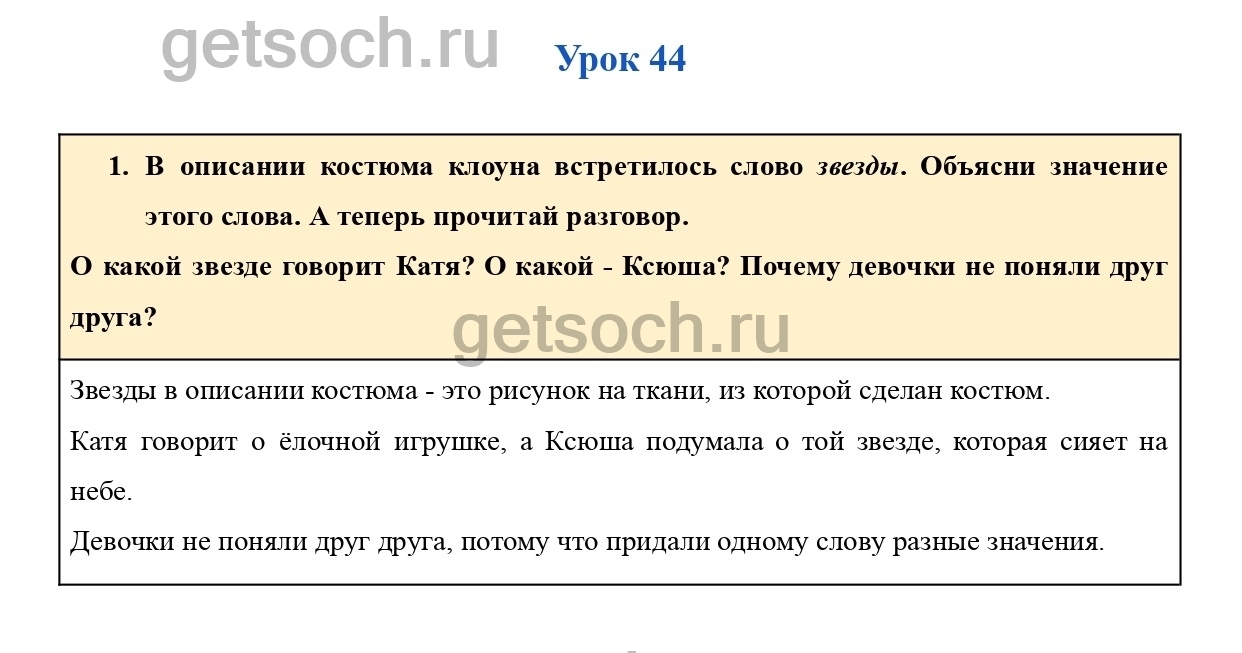 В описании костюма клоуна встретилось слово звезды. Объясни значение этого слова. А теперь прочитай разговор.