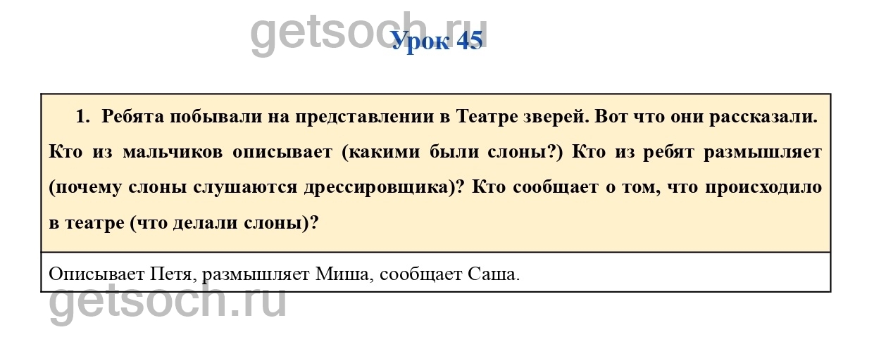 Кто из мальчиков описывает (какими были слоны?) Кто из ребят размышляет (почему слоны слушаются дрессировщика)? Кто сообщает о том, что происходило в театре (что делали слоны)?”