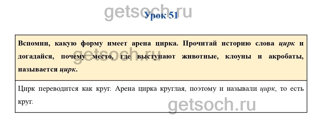 Вспомни, какую форму имеет арена цирка. Прочитай историю слова цирк и догадайся, почему место, где выступают животные, клоуны и акробаты, называется цирк.