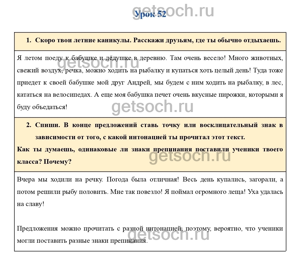 “Спиши. В конце предложений ставь точку или восклицательный знак в зависимости от того, с какой интонацией ты прочитал этот текст.