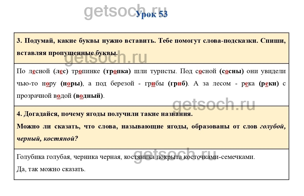 3. Подумай, какие буквы нужно вставить. Тебе помогут слова-подсказки. Спиши, вставляя пропущенные буквы.