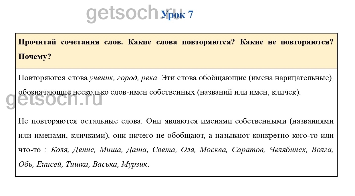 Прочитай сочетания слов. Какие слова повторяются? Какие не повторяются? Почему?