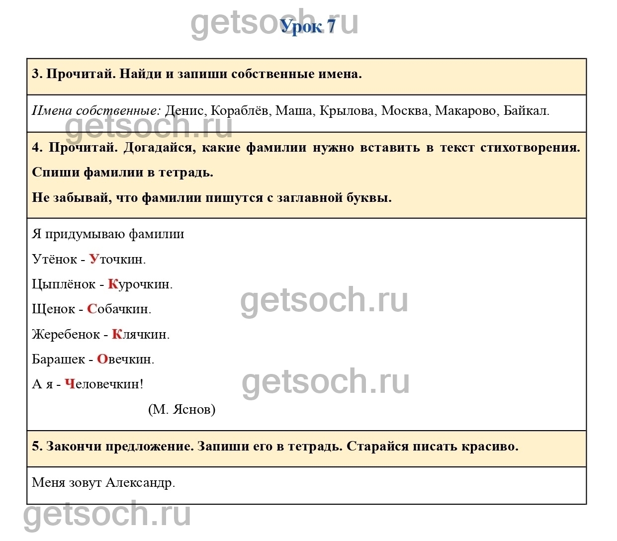 “4. Прочитай. Догадайся, какие фамилии нужно вставить в текст стихотворения. Спиши фамилии в тетрадь.