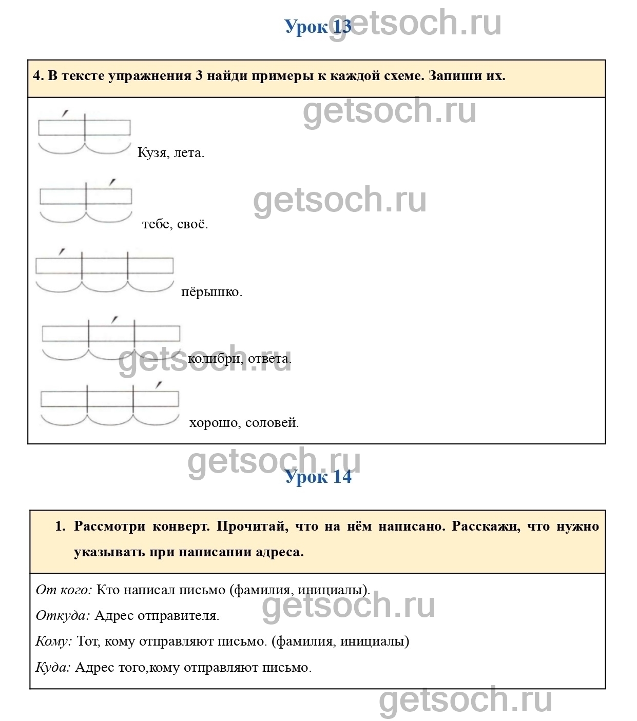 4. В тексте упражнения 3 найди примеры к каждой схеме. Запиши их.