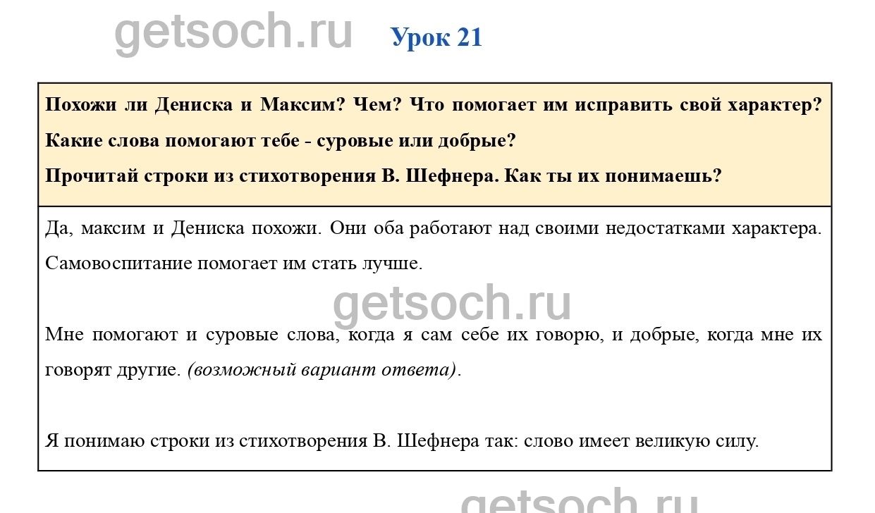 “Похожи ли Дениска и Максим? Чем? Что помогает им исправить свой характер? Какие слова помогают тебе – суровые или добрые?